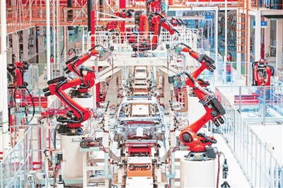 步入上饶经济技术开发区爱驰汽车超级智慧工厂,热火朝天的生产景象扑面而来:142台机器人张开臂膀,左右摇摆,火光四射。在这里,每个工位上的机器人都被24小时“监控”,一丁点风吹草动都能被即时发现。企业管理者足不出户就能对汽车生产进行“望闻问切”“对症开方”。