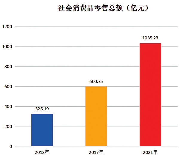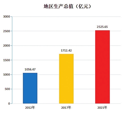 十年间,吉安工业强市战略深入推进,主导产业高质量倍增升级。全市规模工业营业收入从2012年的2001.6亿元增长到2021年的4408.5亿元,增长120%。电子信息首位产业集聚规模企业390家,2021年营业收入达1936.9亿元、总量全省第一,实现十年增长7.5倍。