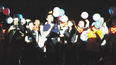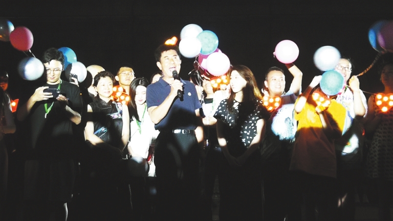 爱情快闪。8月18日,郭凯敏与30对情侣悄然出现在庐山索道广场,一场别出心裁的“光影秀+快闪”,宣告第三届庐山国际爱情电影周甜蜜开启。从“爱的瞬间”环节到“爱的见证”,再到“爱的启航”,在动人的夜色中,在巨幕和灯盏的映衬下,划过天际的光影鹊桥和广场上巨大的爱心造型令现场游客激动不已。