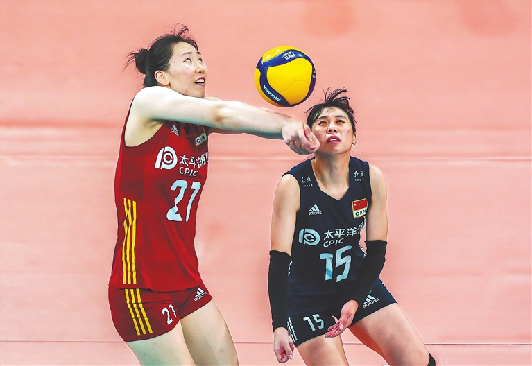 8月29日,中国队球员周页彤(左)在比赛中垫球。当日,在菲律宾帕西格市举行的2022年女排亚洲杯决赛中,中国队1∶3负于日本队获得亚军,日本女排首夺亚洲杯冠军。 新华社发(乌马利摄)