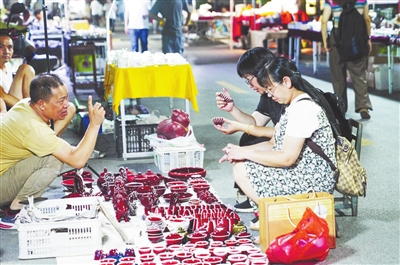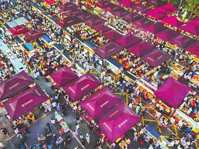 8月29日晚7时许,记者来到南昌市经开区紫荆路步行街夜市,这里灯火辉煌、流光溢彩,一百余顶大帐篷有序排开,各种美食摊点挑灯夜战,精心制作的各种特色小吃鲜香扑鼻,慕名前来品味美食的人们摩肩接踵。“这儿的氛围特别好,非常热闹,美食种类多又很好吃,性价比也高,比如猪脚、薯条、牛骨粉等,都是我爱吃的。”正与朋友大快朵颐的张燕告诉记者。望着购买的食客排起了长队,在紫荆夜市经营章鱼烧摊点的店主蒋亚南十分开心,去年才回到家乡创业的她,认为夜市的高人气彰显了“夜经济”的巨大活力。