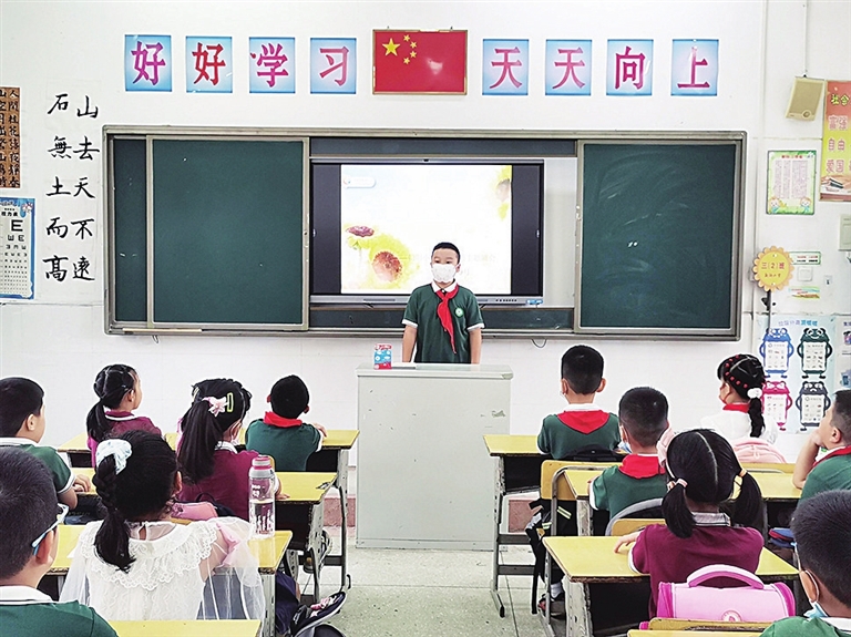 “我们要在孩子们心中埋下爱国爱党的种子、科学严谨的种子、勤劳奋斗的种子。”朝阳小学校长吴玮介绍,“开学第一课”就是要把学习的态度和方法、把教育的价值和意义传递给孩子们,为他们的成长“扣好第一粒扣子”。(袁 静/文 程星月/图)