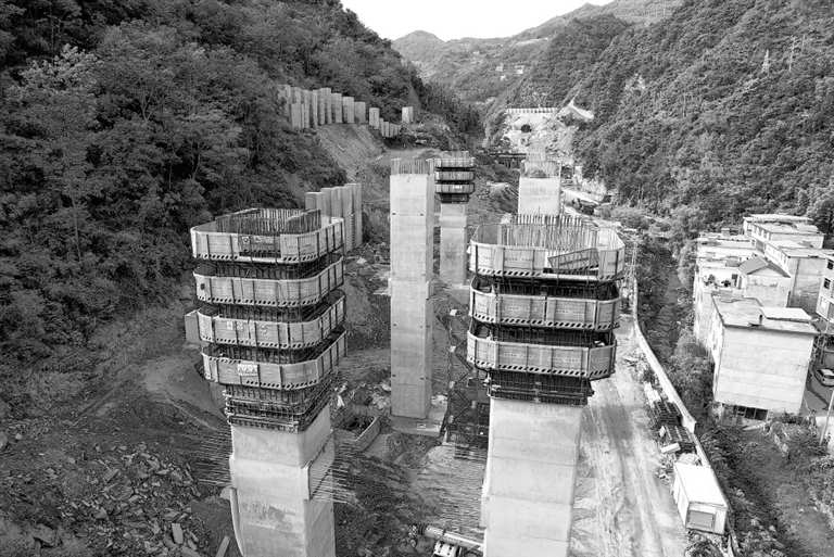 建设中的西康高铁桐木车站特大桥。西(安)(安)康高速铁路是国家中长期铁路网规划中“八纵八横”高速铁路网包(头)海(口)通道的重要组成部分,全长171公里,设计时速350公里,计划建设工期5年。目前,西康高铁项目建设按计划有序推进。新华社记者 邵 瑞摄