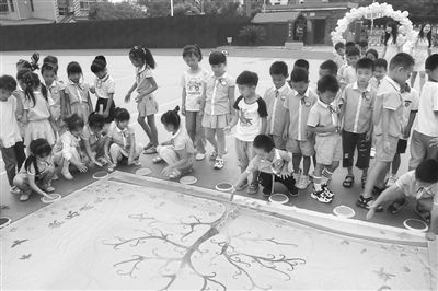 9月8日,靖安县仁首中心小学全校师生欢聚一堂,通过丰富多彩的活动,让学生们体验不一样的开学典礼。图为一年级新生用彩色颜料涂鸦,祝愿大家在校园里快乐成长。通讯员 熊秋丰摄