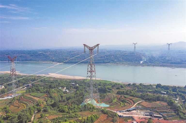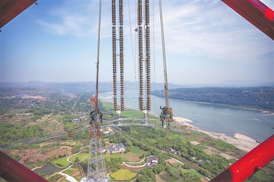 “西电东送”大动脉 特高压白浙线在渝顺利跨越长江