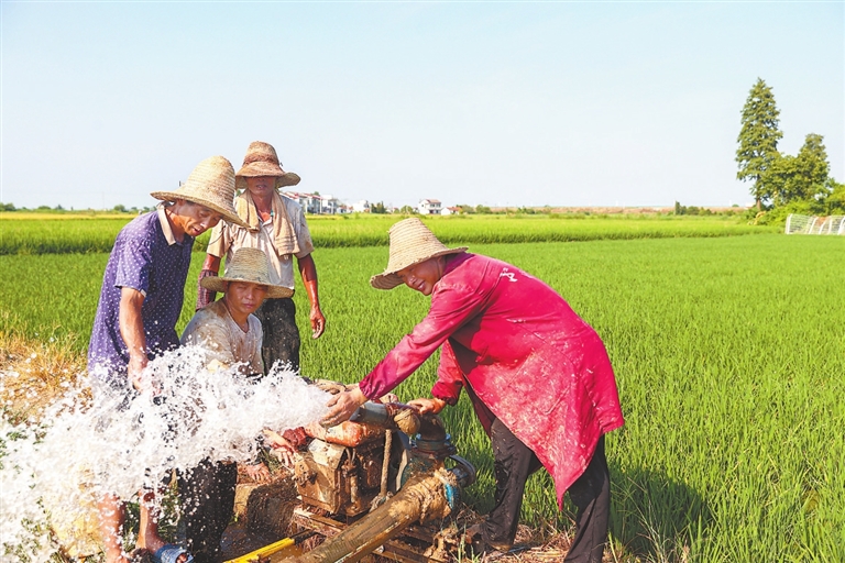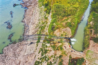秋旱严重,晚稻灌溉用水出现困难。靖安县组织协调党员、干部和群众奋战在抗旱一线,通过开挖沟渠引水、架设管道抽水等方式,力争将旱情影响降到最低,确保秋粮稳产丰收。