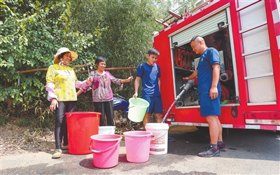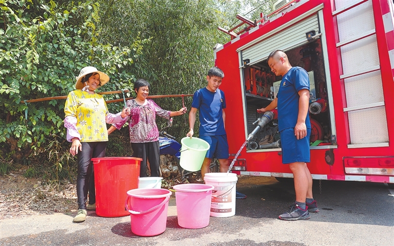 在瑞昌市范镇开源村,持续高温少雨天气让不少村民面临生活用水紧张的情况。消防员们迅速行动,临时组建送水小分队,担负起向周边村庄送水的任务,让每一名群众都能喝上干净水。