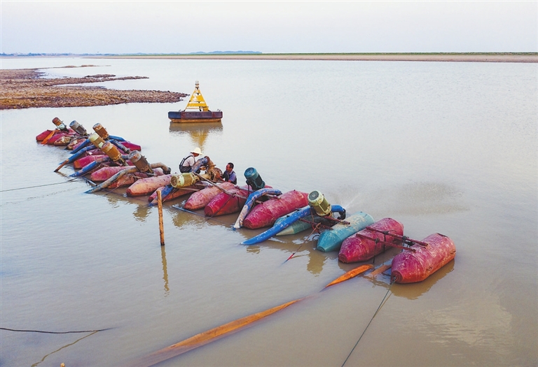 省水文监测中心数据显示,9月14日16时,鄱阳湖星子站水位7.67米。为减少持续低水位对都昌县城16万居民用水影响,当地自来水厂取水口紧急加装多台水泵,24小时从湖中抽水保供应。