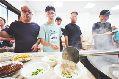 凌晨4时,铅山县河口镇席山路,朱有林架起大锅,放入水和筒骨。不一会,筒骨便在锅里翻滚,再改用微火慢煨,骨质与汤汁便充分相融。