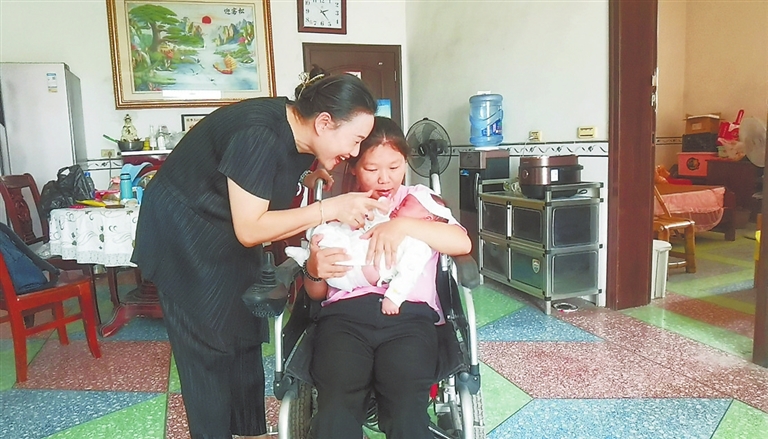 今年8月,黄仕芳生下一个健康可爱的男孩。看着怀中的小宝宝,这个39岁的残疾妈妈喜极而泣。“从学习认字,到开小超市,再到结婚,现在又有了可爱的宝宝,这3年来,我的日子一天比一天好,我现在真的很快乐、很幸福!”