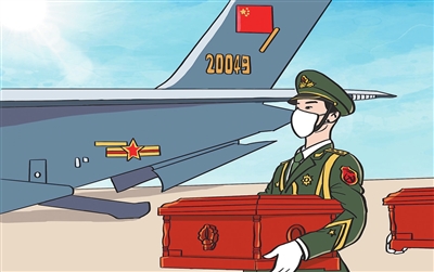 72年前,伴随着“雄赳赳、气昂昂,跨过鸭绿江”的雄壮歌声,中国人民志愿军将士义无反顾奔向了抗美援朝、保家卫国的前线。身处恶劣而残酷的战场,面对强大而凶狠的敌人,他们不惜抛头颅、洒热血,愈战愈勇,越打越强,打出了惊天地、泣鬼神的血性,打败了武装到牙齿的对手,打破了美军不可战胜的神话,成为中国人民心中“最可爱的人”。牺牲在异国他乡的197653名志愿军战士,祖国没有忘记,历史没有忘记,人民没有忘记。让英雄回家,成为国人的共同心愿。2014年首批437位中国人民志愿军烈士的遗骸从韩国仁川机场踏上回家之路,运送烈士遗骸的专机进入中国领空后,空军派出两架歼-11B战机迎接护航,那一刻,无数国人泪目,“山川同念英雄还乡”。轰鸣的战机、迎接的水门、威严的骑警车队,以及覆盖国旗、鞠躬致敬、擦拭棺椁、奏唱国歌,每一个细节都令人动容,寄托着人们对英雄的无限崇敬与缅怀。