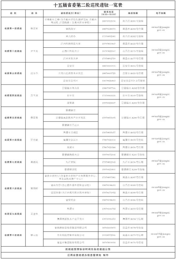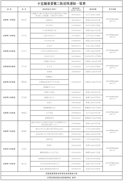 十五届省委第二轮巡视进驻一览表