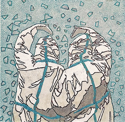 现代漆画的基本材料是漆,其艺术语言的丰富性也正是得益于漆这一特异材料。漆的色泽纯度高,在漆画作品中显得不燥不火,纯得深邃,纯得温润。譬如李明的《时刻》(图5),跨越障碍物、充满动感的男孩,在大片高纯度背景蓝的衬托下,构成一幅生动、唯美的画面。此外,杜理想的《长春》(图6)、陈雪岩的《戏水》(图7)、虞晨鑫的《向阳而生》(图8)等作品,都是在用色上极为出彩的佳作,给观者美的震撼。
