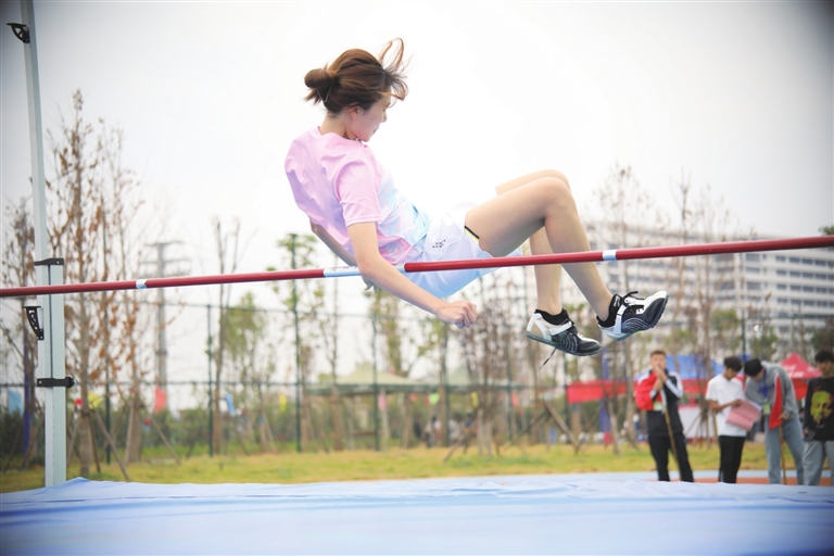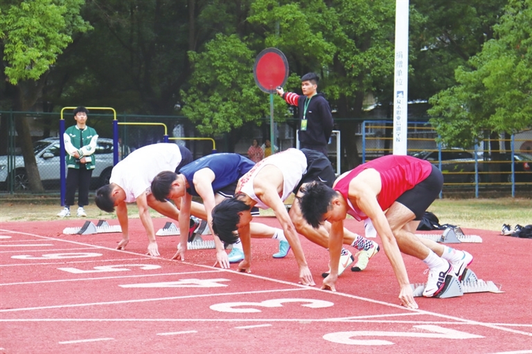 10月28日,上饶师范学院第19届田径运动会开幕,来自全校14个二级学院的500余名学生参加47个项目的角逐。 徐 丹摄