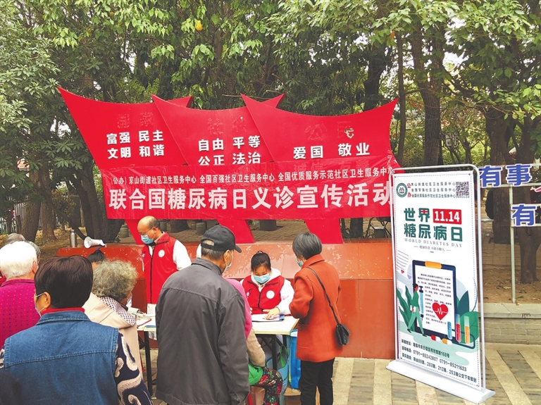 11月14日是第31个“世界糖尿病日”。当日上午,青云谱区京山街道社区卫生服务中心在京新社区组织开展了“世界糖尿病日”宣传义诊活动。