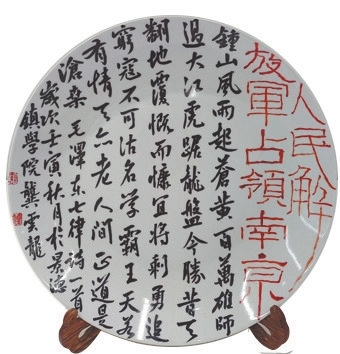 陶瓷书法,将中国传统的陶瓷和书法艺术融为一体,是近年来涌现出来的一种新的艺术门类。在瓷博会期间,一个高水平的陶瓷书法展览在景德镇学院举行。陶瓷书法的作者为江西文化艺术基金2021年度资助项目——江西省陶瓷书法创作高级人才培养研修班的教师和学员。这批学员来自全国各地,书法功底扎实,对陶瓷书法充满热情,通过研修班学习,掌握了陶瓷书法技艺,创作实力较强。展出的作品各种书体具备,条屏斗方、瓷瓶瓷盘等各种形式新颖别致,釉上釉下、笔书刀刻等创作技法多样。展出的精品多,其中一件由研修班师生集体创作的16.8米巨幅陶瓷作品《共产党宣言》,均用精美的小楷写成,令人赞叹。