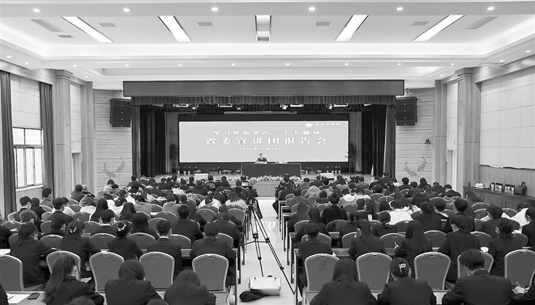 本报讯 (本报全媒体记者)11月21日上午,学习贯彻党的二十大精神省委宣讲团宣讲报告会在新余学院举行。省委宣讲团成员、省委办公厅正厅级督查专员张锋作宣讲报告。