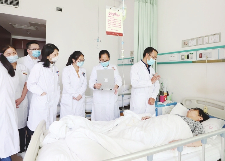 臻于至善,心系患者。近年来,该院脑病科(神经内科)坚持以患者为中心,从院前、院中延伸到院后,构建了从预防、治疗、康复再到健康管理的一体化管理模式。在做好日常医疗工作的基础上,胡穗发带领团队不定期深入社区开展义诊和科普讲座, 向大众普及疾病预防知识,提升群众防治认知,通过提前预防使患者得到高效的治疗。针对脑卒中造成的并发症、后遗症,除西医常规处理方法外,科室引进“醒脑开窍”针刺法并结合临床实际加以改良创新,让患者收获满意的临床康复效果,也使他们获得了更有质量的生活。