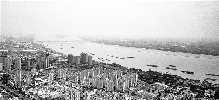 近日,空中俯瞰长江九江段江面,一艘艘货船在航道上有序航行,一派繁忙运输景象。 本报全媒体记者 张翰林摄