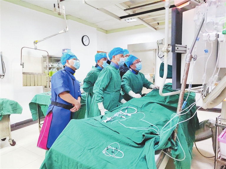 近期,九江市第三人民医院通过扩容医疗资源、优化就医流程、畅通绿色通道、实行线上问诊等一系列措施,进一步提升接诊能力,最大程度满足群众医疗服务需求。图为该院心血管内科成功为患者植入了最新型无导线起搏器。