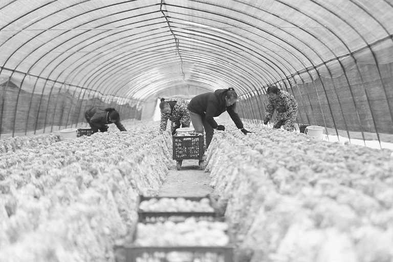12月27日,横峰县龙门畈乡柯家村36个菌菇大棚的菌菇迎来采收期,菇农正在抓紧采收。近年来,当地采取“党支部+基地+农户”发展模式,建设食用菌种植示范基地,吸纳农户参与管理及务工,带动群众致富增收。通讯员 薛 南摄