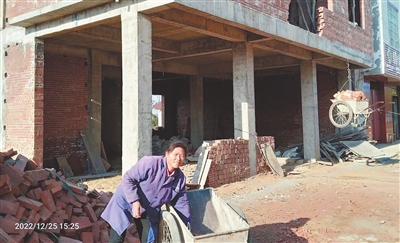 搬砖头、倒水泥、拌砂石……12月26日,天气虽然有点冷,但万安县窑头镇窑头村槽下自然村小组的村民戴军华一家,正在为建新房忙得热火朝天。