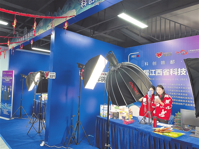 会唱歌的黄光氛围灯、经久耐用的品牌锅具、自带抗菌功能的羽绒服……1月13日,在位于南昌经开区的江西省科技创新产品直播数字产业基地内,作为2023全国网上年货节江西分会场专题活动之一,第二届江西省科技创新产品直播节开幕,网红主播准时出现在直播间,共同为网友带来一大批富有科技含量的本土产品,单场实现销售额超百万元。