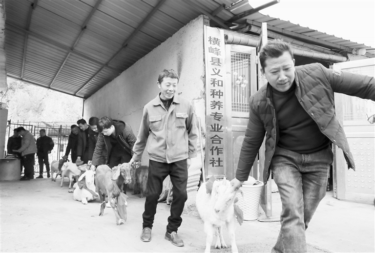 1月10日,横峰县葛源镇黄山村义和种养专业合作社热闹非凡,合作社正在为村民发放分红——山羊一只,村民登记后将选中的山羊带回家。黄山村从2021年开始生态山羊养殖,通过“村集体经济合作社+专业养殖合作社+农户”发展模式,去年创经济效益20万元,150户入股村民户均分红1000元。本报全媒体记者 吕玉玺摄