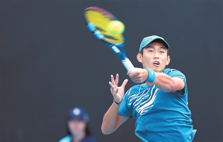 图为1月16日,商竣程在比赛中回球。