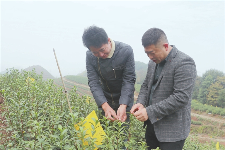 在茶林,记者看到,许多茶树上挂有一块块黄色纸板。洪兴利介绍,这些纸板是生态防治病虫害产品。在茶叶种植过程中,为确保茶叶品质,保障消费者喝上健康放心茶,生产全过程禁用化学农药、化肥。