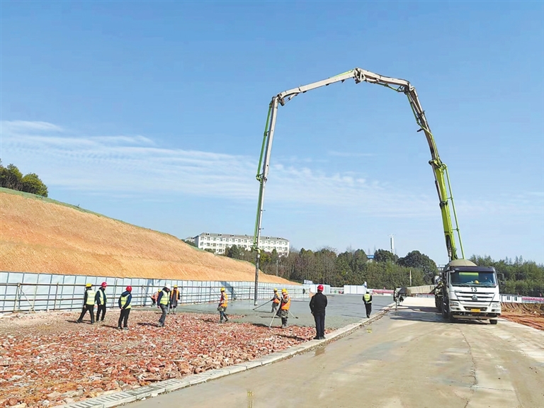 1月28日,农历正月初七,走进瑞昌市棚户区改造安置房文博苑建设项目施工现场,只见一台泵车轻展长臂,源源不断地向地面输送混凝土,数十名工人有条不紊地搓平压光,机器轰鸣中,一条崭新的道路在空地上铺就。