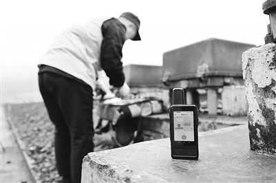 2月8日,贵阳电务段工作人员携带着北斗防护系统设备在进行作业。