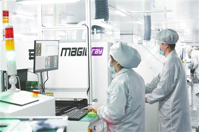 ◀ 2月10日,兴国经开区的江西晶华微电子有限公司,各条生产线马力全开。该公司主要生产液晶显示屏、显示模组等产品,广泛用于汽车、医疗等领域,今年预计实现主营业务收入5亿元,创造就业岗位500个。 本报全媒体记者 焦俊杰摄
