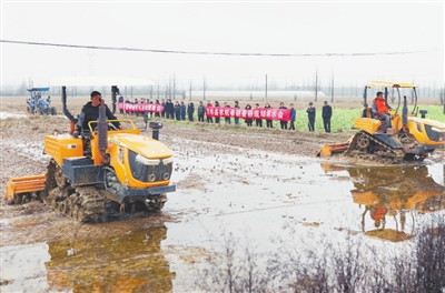 2月14日,万年县在陈营镇南岗村举行农机春耕备耕现场演示,乡镇农机站站长、技术人员及购买插秧机种粮大户等到场观摩学习。特约通讯员 徐声高摄