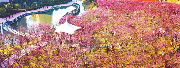 2月15日,游客在九江市濂溪区南山公园赏梅。春回大地,南山公园数万朵梅花竞相绽放,市民流连在此打卡拍照,陶醉在诗意的春天里。 本报全媒体记者 梁振堂摄