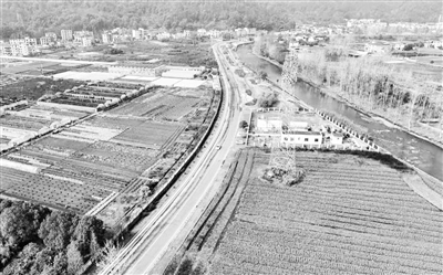 萍乡市安源区五陂镇长潭村,宽阔的公路和河流,房屋、农田、蔬菜大棚,相互映衬,构成一幅美丽的乡村画卷。李桂东摄