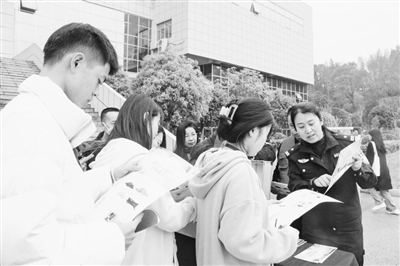 3月1日,萍乡市公安局开发区分局禁毒大队民警走进江西工业工程职业技术学院,通过讲座、仿真毒品展示、发放禁毒宣传手册等方式,向师生宣传毒品的危害。今年以来,该区禁毒大队陆续开展禁毒知识进校园、进社区、进集市等活动,大力营造全民禁毒的浓厚氛围。本报全媒体记者 钟进文摄