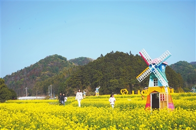2月26日,新余市渝水区良山镇下保村的百亩花海基地,金黄色的油菜花竞相盛开,吸引游客前来踏青赏花。下保村近期推出了“花海漫步”“花田音乐会”等多项游玩项目,满足游客多样化需求,让游客乐享美好春光。本报全媒体记者 邹宇波摄