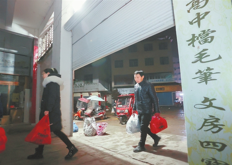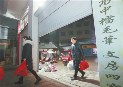 3月2日,农历二月十一,又到了进贤县文港笔市赶集的日子。清晨5时,文港镇长塘村委会下范村,笔匠范先龙起床简单洗漱后,带上刚刚制作好的3000个笔头,赶往文港文化用品商场。5时30分,商场卷闸门准时打开,和范先龙一样在此等候多时的笔匠鱼贯而入,直奔二楼,挂好笔头样品,等待买家,笔市就这样开市了。
