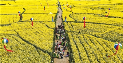 3月12日,莲花县第十三届油菜花节在路口镇湖塘村举行,花海骑行、花田音乐会、长龙宴等互动体验项目,吸引了众多游客前来踏春游玩。近年来,该县大力推动油菜产业与乡村旅游深度融合,将生态优势转化为发展优势,助力乡村振兴。本报全媒体记者 史港泽摄