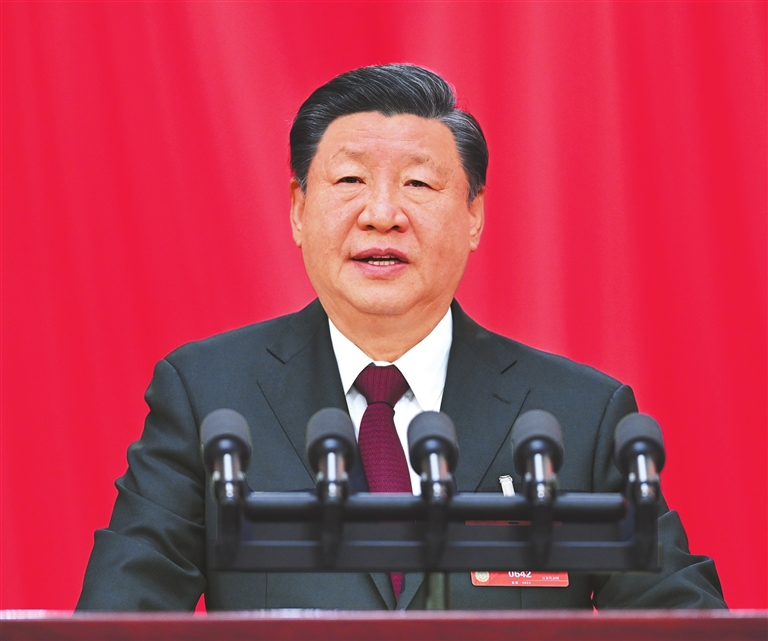 习近平强调,从现在起到本世纪中叶,全面建成社会主义现代化强国、全面推进中华民族伟大复兴,是全党全国人民的中心任务。强国建设、民族复兴的接力棒,历史地落在我们这一代人身上。我们要按照党的二十大的战略部署,坚持统筹推进“五位一体”总体布局、协调推进“四个全面”战略布局,加快推进中国式现代化建设,团结奋斗,开拓创新,在新征程上作出无负时代、无负历史、无负人民的业绩,为推进强国建设、民族复兴作出我们这一代人的应有贡献。