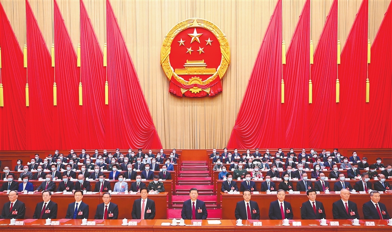 赵乐际说,党的二十大擘画了全面建成社会主义现代化强国、以中国式现代化全面推进中华民族伟大复兴的宏伟蓝图。十四届全国人大及其常委会要全面贯彻党的二十大精神,认真履行宪法法律赋予的职责,坚持党的领导、人民当家作主、依法治国有机统一,把人民代表大会制度坚持好、完善好、运行好,推动党的二十大确定的目标任务落实见效,为全面建设社会主义现代化国家贡献力量。