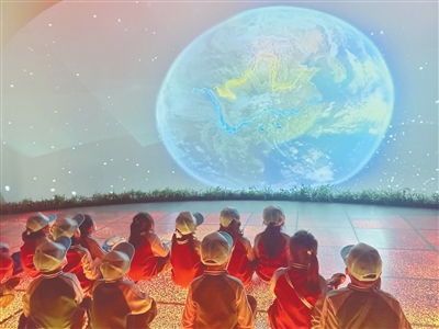 为进一步落实落细“双减”政策,3月10日,南昌市豫章小学教育集团豫章路校区组织学生走进省博物馆,参与“三点半博物馆”之“揭秘小鸟虎”系列课程。图为学生正在观看视频《穿越万年》。通讯员 喻明凤摄