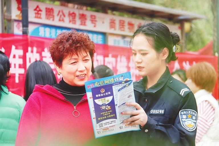 3月13日,奉新县蒋家堎社区金鹏公馆小区,社区志愿者和派出所民警向群众宣传防范养老诈骗知识。该社区开展“筑牢反诈防火墙 守好自己养老钱”集中宣传活动,守好老年人的养老钱。特约通讯员 邓建刚摄