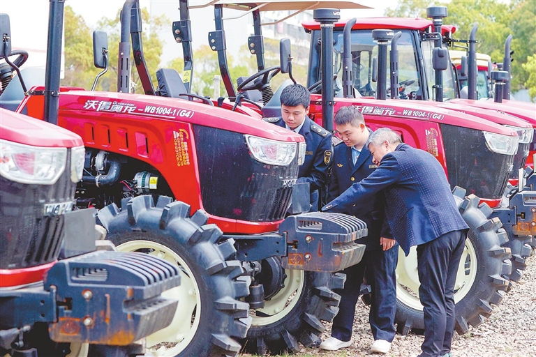 ◀3月15日,峡江县市场监督管理局执法人员在对农用机械进行检查。连日来,该县开展农机市场专项检查行动,从源头上防止假冒伪劣产品进入农机市场,确保春耕农业生产安全。