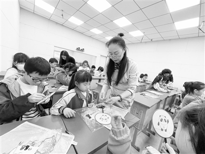 3月13日,老师在指导孩子们体验手工刺绣。南昌市东湖区非物质文化遗产保护传承基地——南昌市豫章小学教育集团爱国路校区将“豫章绣”的奇妙技艺融入课后社团课堂,孩子们在一针一线中感受非遗文化的魅力。