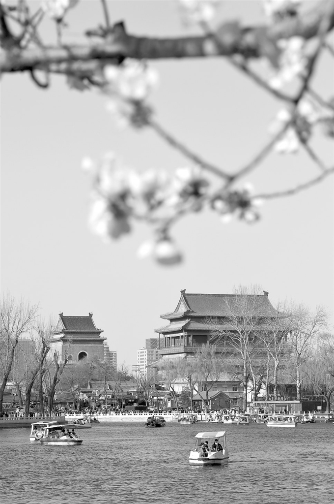 这是3月25日拍摄的北京钟鼓楼附近的景色。