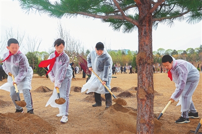 在京中共中央政治局委员、中央书记处书记、国务委员等参加植树活动。