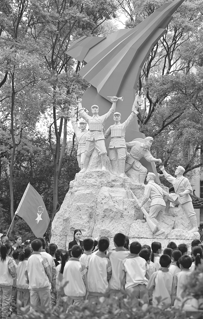 ▶清明节前夕,赣州市章贡区相关单位联合学校前往革命烈士纪念馆开展祭扫活动,缅怀革命先烈,传承红色基因。特约通讯员 胡江涛摄