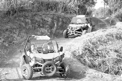 ◀近日,在庐山市忆恋山庄内,游客驾驶山地卡丁车行驶在林间小道上,体验速度与激情。该市打造以核心景区为依托,以游学、体验、休闲为主的乡村旅游亮点,丰富了旅游业态,增加了农民收入。特约通讯员 韩俊烜摄